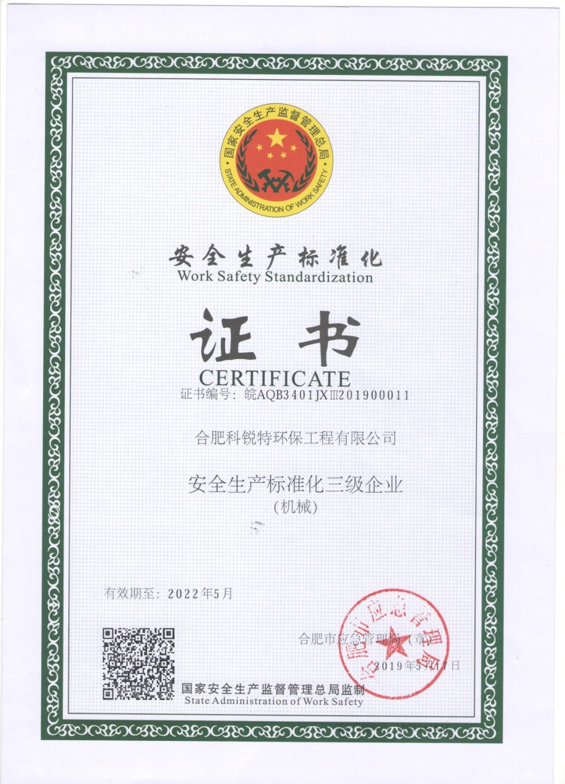 為進(jìn)一步規(guī)范公司生產(chǎn)、科研、銷售操作流程、有效控制風(fēng)險(xiǎn)、形成標(biāo)準(zhǔn)化經(jīng)營(yíng)、規(guī)范化管理的模式,公司從戰(zhàn)略的眼光出發(fā),從2018年3月份開展導(dǎo)入ISO9001質(zhì)量管理體系及安全生產(chǎn)標(biāo)準(zhǔn)化管理體系,,并順利通過了體系的認(rèn)證和審核,于2018年05月獲得了ISO9001質(zhì)量管理體系認(rèn)證證書,2019年5月獲得安全生產(chǎn)標(biāo)準(zhǔn)化證書。