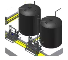 砂濾出水給一級(jí)DTRO 設(shè)備供水,首先進(jìn)入芯濾,芯式過(guò)濾器進(jìn)一步去除滲濾液中的懸浮物,為了防止各種難溶性硫酸鹽、硅酸鹽在膜組件內(nèi)由于高倍濃縮產(chǎn)生結(jié)垢現(xiàn)象,有效延長(zhǎng)膜使用壽命,在一級(jí)反滲透膜前需加入一定量的阻垢劑。