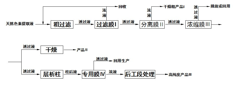 膜分離技術(shù)用于天然色素提取的新工藝流程: